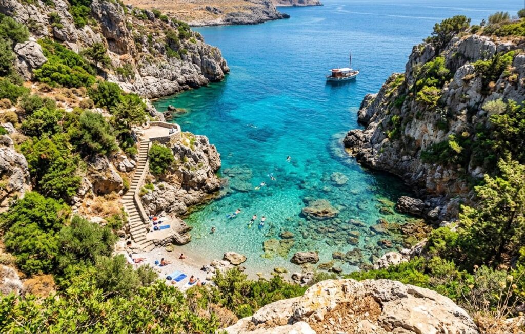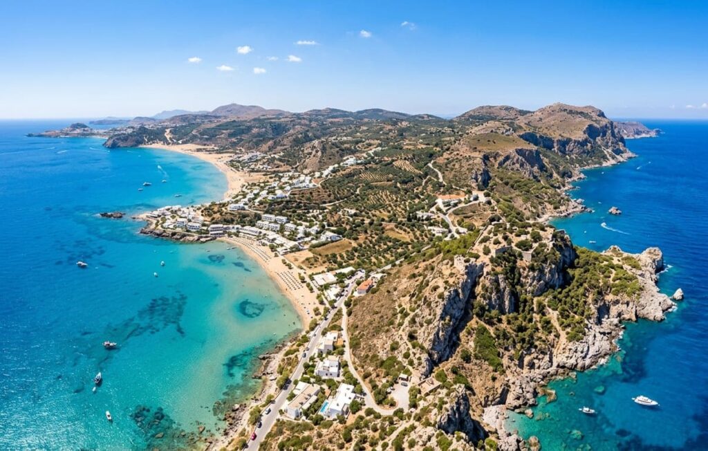 Coasta sa, întinsă pe sute de kilometri, ascunde o diversitate remarcabilă de plaje — de la întinderi de nisip fin auriu până la golfuri stâncoase cu pietriș și ape de un turcoaz intens. Ceea ce face Rodos cu adevărat specială față de alte insule grecești este tocmai această varietate: coasta de est, mai adăpostită și mai calmă, contrastează frumos cu coasta de vest, mai sălbatică și mai vântoasă, oferind experiențe distincte pentru fiecare tip de călător.